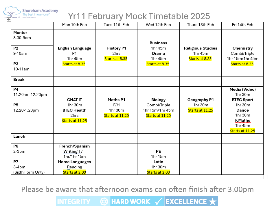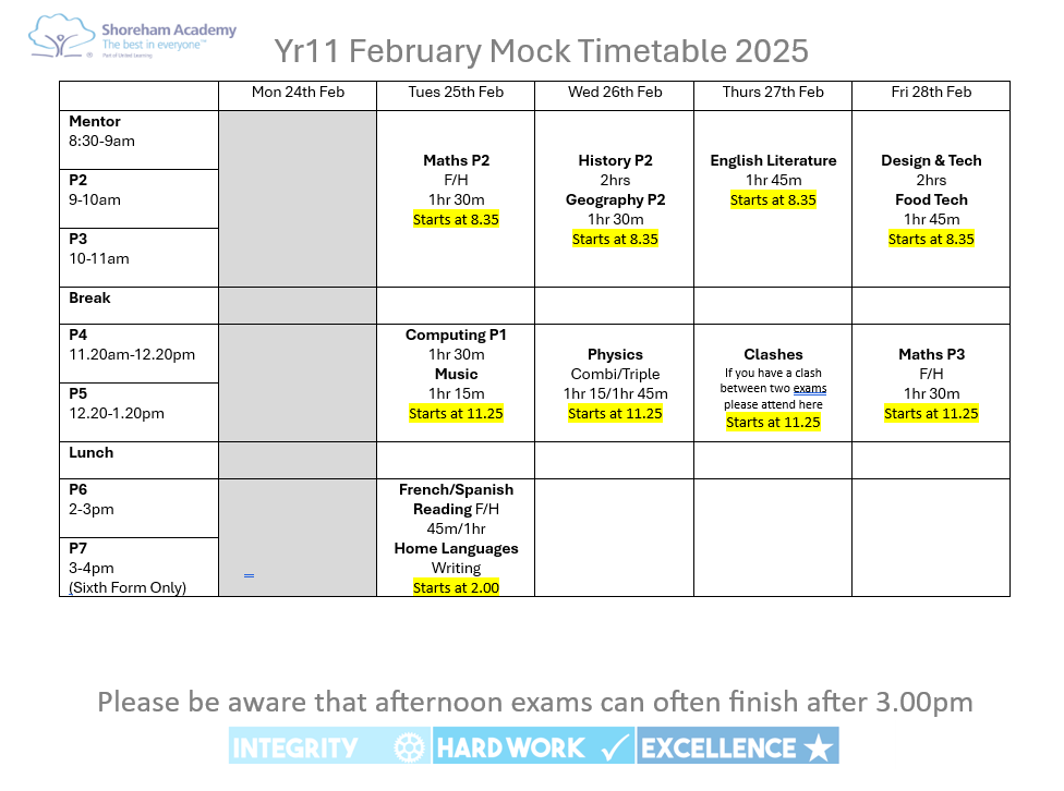 KS4 and KS5 Mocks Summer 2025 (Year 10 and 12)
